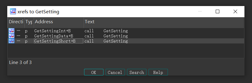最后我们去查找引用了GetSetting函数的另外三个函数,它们分别是GetSettingShort、GetSettingInt、GetSettingData。
